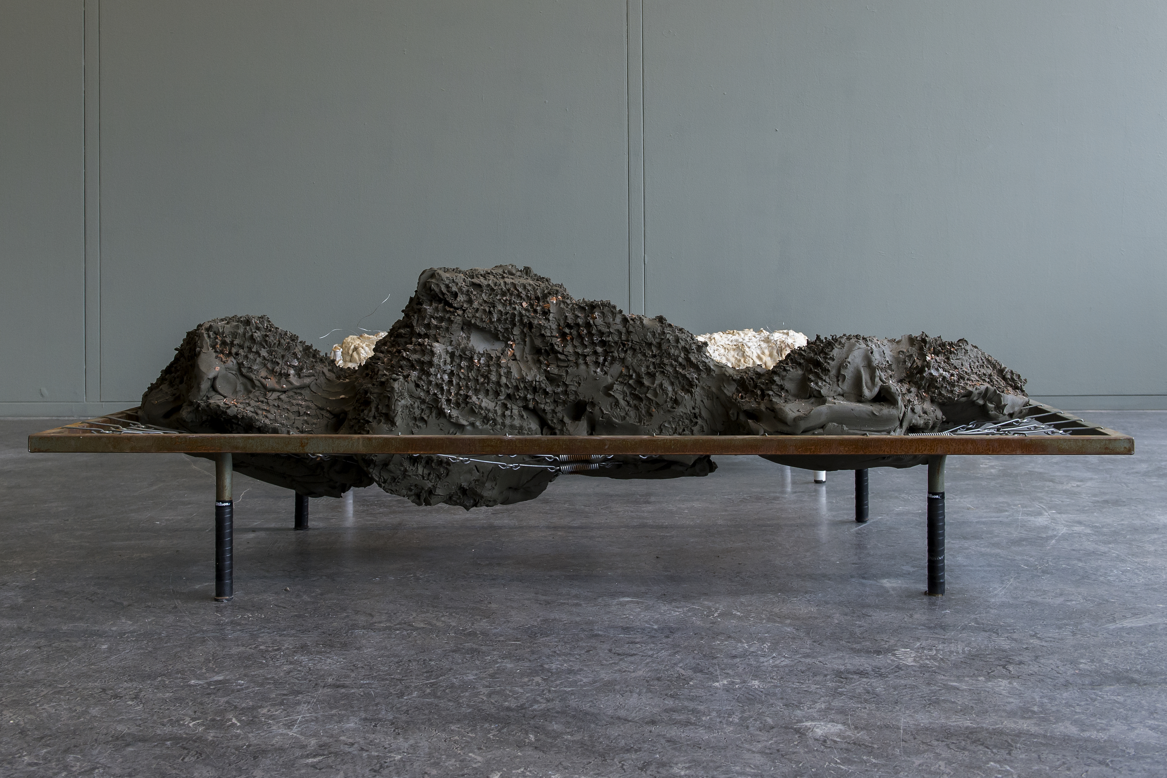clay, concrete, concrete recycling, plaster, steel bed frames, Wilson overgrips 200 x 90 x 60 cm